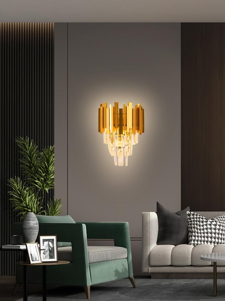 - هيكل متين وعالي الجودة : مصنوع من الحديد المطلي باللون الذهبي والكرستال اللامع، مما يضمن المتانة والجمال معًا.