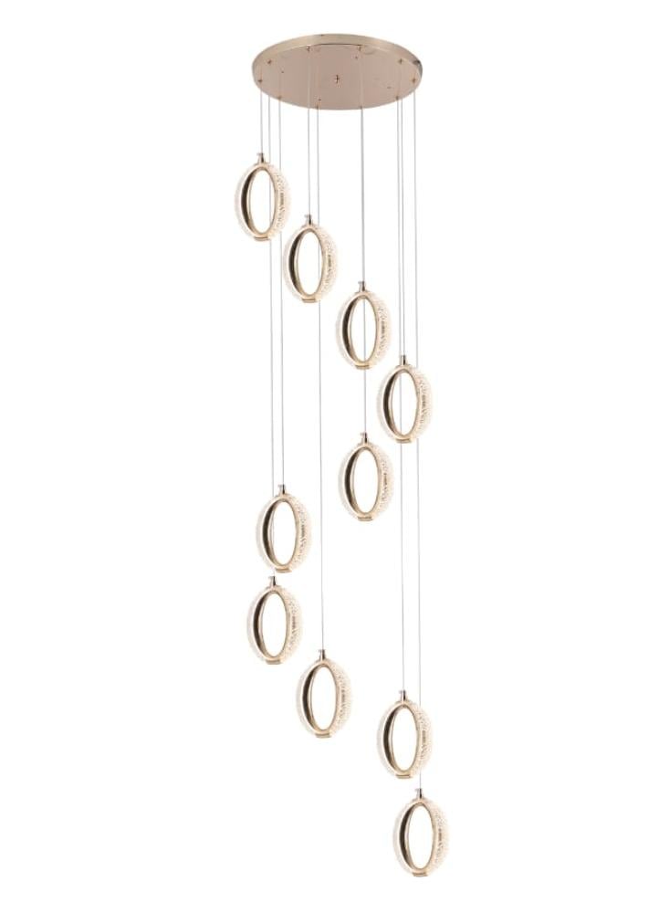 تصميم مودرن وأنيق : تتميز الثريا بتصميم علاقي مبتكر ومصنوع من إطار ذهبي متين مع شبكة كريستال شفافة، مما يضفي أجواءً دافئة وفاخرة على المساحة وأي ديكور داخلي.