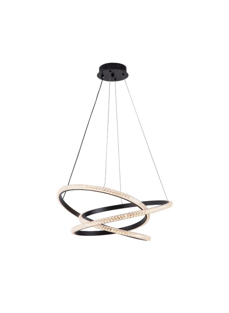 تأتي بميزة فريدة وهي ثلاث مستويات إضاءة (أبيض، أصفر، كريمي شمسي)، مما يمنحك حرية التحكم في جو الغرفة حسب رغبتك. يتميز الإطار بتصميمه الحلزوني الفاخر والمصابيح العلاقية التي تضفي لمسة زخرفية على أي ديكور.
