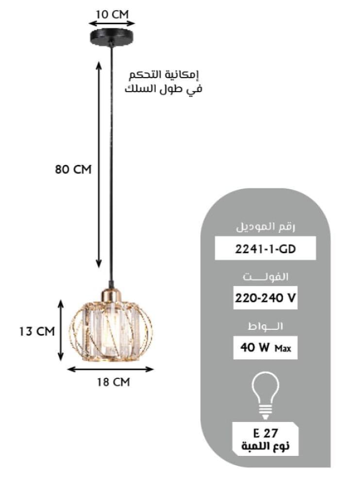 - قابلية التحكم في الطول : يمكنك تعديل طول السلك حسب احتياجاتك ليتناسب تمامًا مع ارتفاع السقف في المطبخ أو غرفة النوم أو السفرة.
