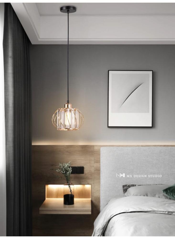 - تصميم مودرن وجذاب : يتميز المصباح بتصميم زجاجي شفاف مع إطار معدني، مما يضيف لمسة عصرية وأنيقة إلى ديكور منزلك.