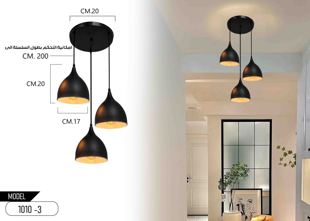 - عدد الإضاءات : تحتوي على 3 لمبات E27 (غير مدمجة) بقدرة 40 واط لكل لمبة، مما يوفر إضاءة قوية ومريحة.