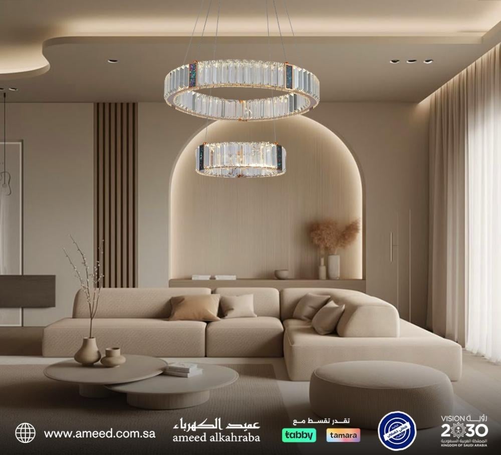 إن الثريّات هي عنصر أساسي للديكور المنزلي، حيث تمتلك تصاميم فاخرة وجذابة تضيف لمسة رائعة له، ومع متجر عميد الكهرباء يمكنك الجمع ما بين التصميم الفاخر وتوفير استهلاك الطاقة، والحصول على ديكور عصري بالإضاءة، وذلك من خلال ثريات موفرة للطاقة، فهي مزوّدة بمصابيح LED موفرة للطاقة، ويمكن استخدامها في القاعات وصالون المنزل والمجالس، ويمكنك اختيار تصميم مناسب من ثريّات مزودة بتقنيات موفرة للطاقة في متجر عميد الكهرباء.