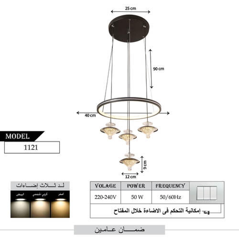 - عدد اللمبات : حلقة LED مدمجة + 4 مصابيح معلقة.