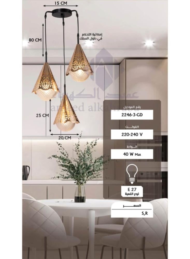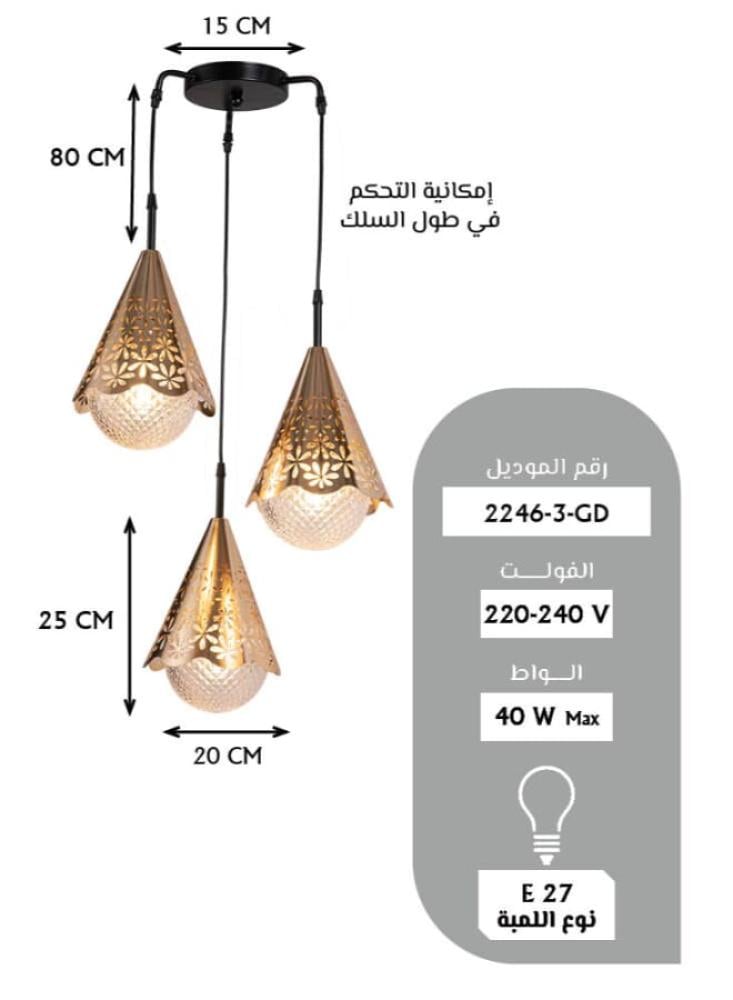 - ثلاث لمبات بقاعدة E27: توفر خيارات متعددة لاختيار اللمبات المناسبة لاحتياجاتك.