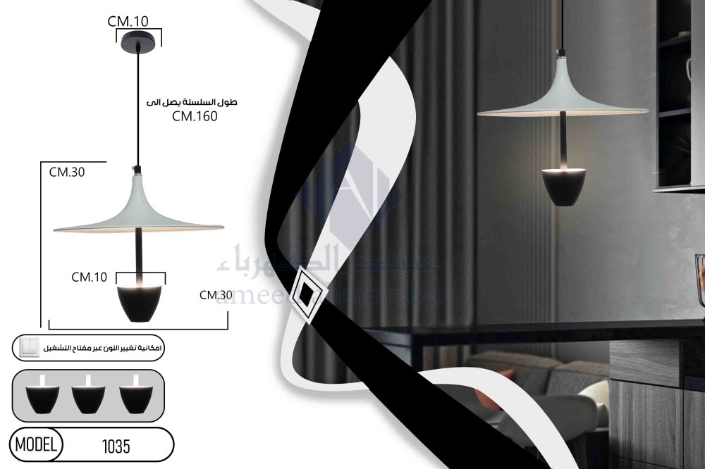 - انارة علاقي مطبخ ابيض مع اسود ليد متجر عميد الكهرباء .