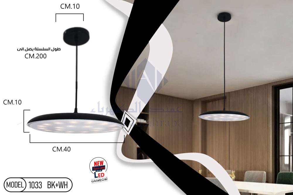 - الأبعاد : مقاس الفريم: 10 سم. \ قطر المنتج: 40 سم. \ طول السلسلة: 200 سم (قابل للتقصير). \ مقاس القاعدة: 10 سم.
