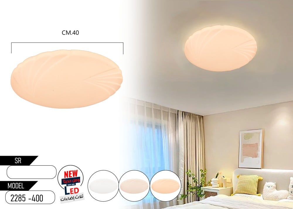 - الإضاءة: ثلاث خيارات (أصفر دافئ، كرييمي-شمسي، أبيض).