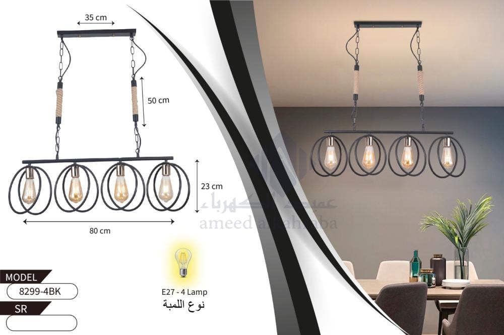 - نوع الإضاءة : لمبة E27 سن عريض (السعر لا يشمل اللمبات).