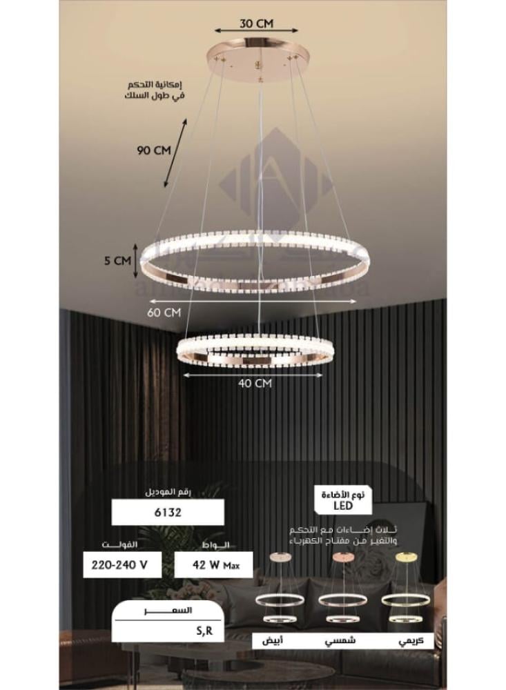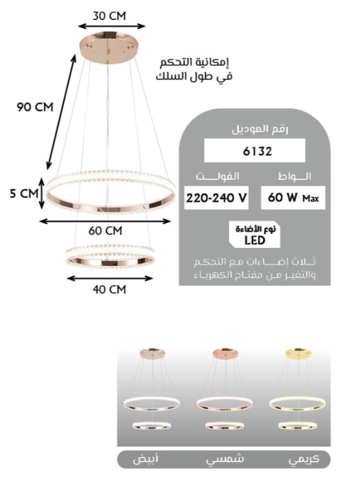 - تصميم حلقات مزدوجة: تصميم دائري مميز يناسب جميع أنماط الديكور الحديث.