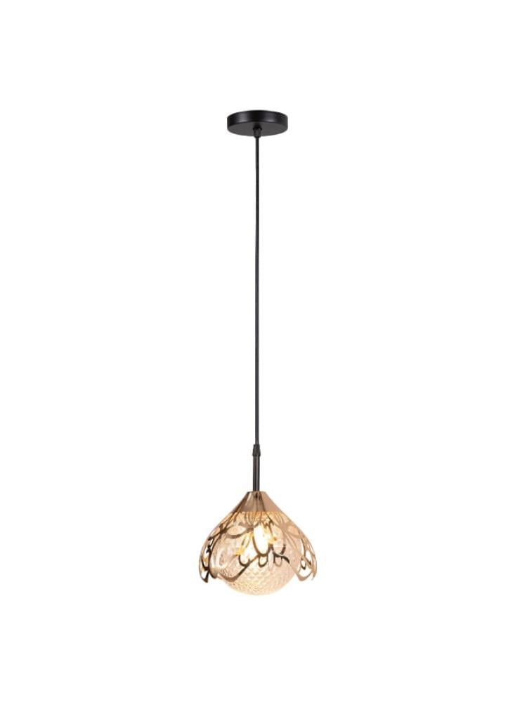 - تصميم أنيق وجذاب : يتميز المصباح بتصميم زجاجي شفاف مع إطار معدني مزخرف، مما يضيف لمسة عصرية وأنيقة إلى ديكور منزلك.