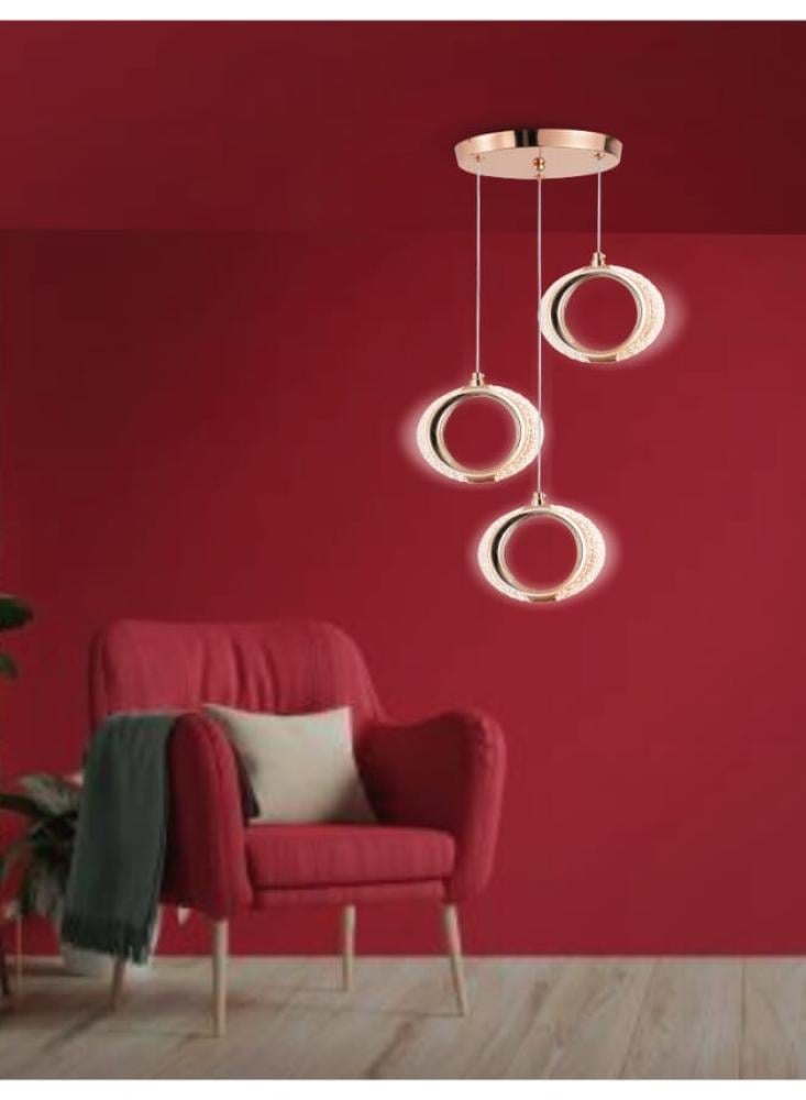 - نجف مودرن بتصميم أنيق : يتميز النجف بتصميم مزين بإطار ذهبي أنيق، مما يخلق أجواءً دافئة ولمسة فاخرة.