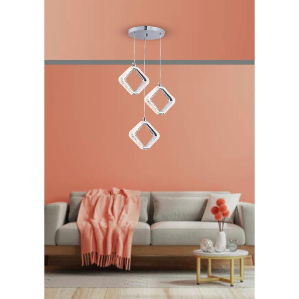 - نجف مودرن بتصميم أنيق : يتميز النجف بتصميم مزين بإطار فضي أنيق، مما يخلق أجواءً دافئة ولمسة فاخرة.