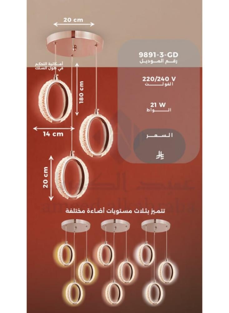 - قابلية التحكم في الطول : يأتي النجف بسلك قابل للتعديل يصل طوله إلى 180 سم، مما يمنحك الحرية لضبط ارتفاعه حسب طبيعة الغرفة.
