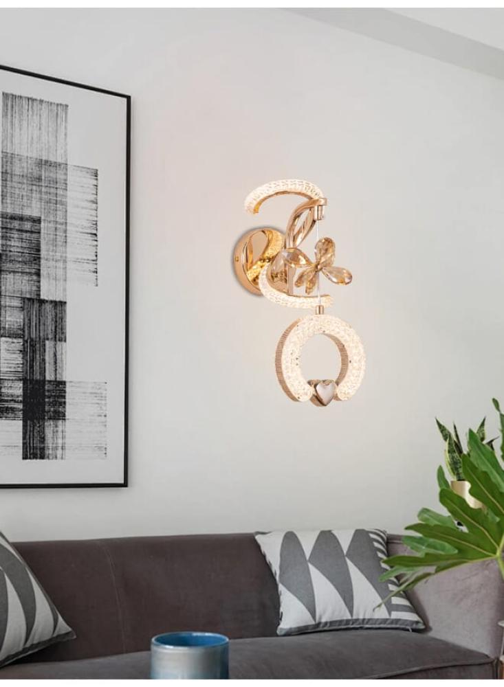 أبليك جداري مودرن إضاءة ليد | إضاءة جدارية 15 واط بـ 3 ألوان إضاءة (أبيض - أصفر - كريمي) | تصميم كريستال وتشطيب ذهبي | مثالي لغرف المعيشة والنوم والممرات 9850-W
