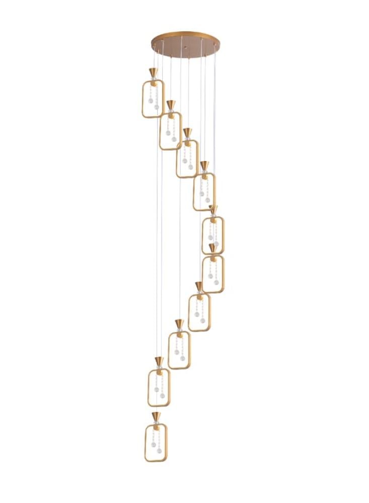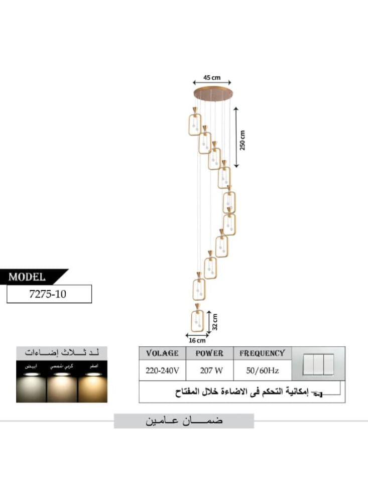 تصميم مودرن وأنيق : تتميز الثريا بتصميم علاقي مبتكر ومصنوع من إطار ذهبي متين، مما يضفي أجواءً دافئة وفاخرة على المساحة وأي ديكور داخلي.